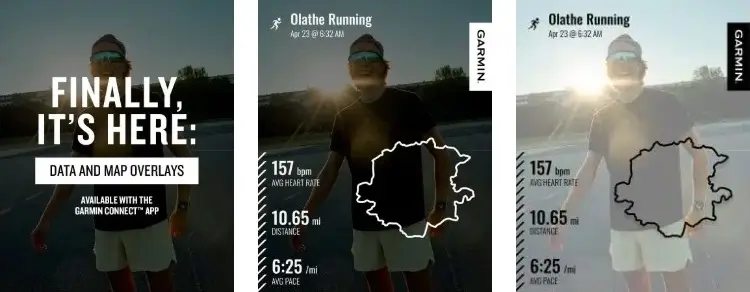 The standout change here is the transparency. Instead of housing data in solid, intrusive boxes, the new layouts allow your background photo to remain the focal point. By integrating the route map and performance stats seamlessly onto the image, Garmin provides a polished, minimalist look that feels more like a custom-designed graphic than a data export.